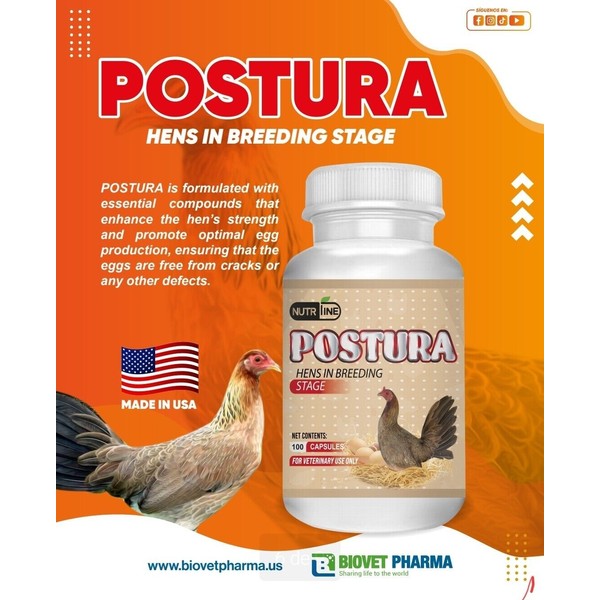 Nutriline POSTURA for Hens Bone and Egg Builder 100 Caps Supplements Para Gallinas