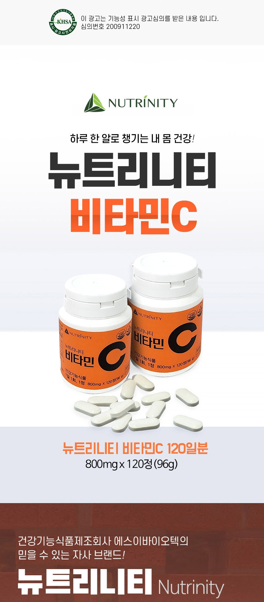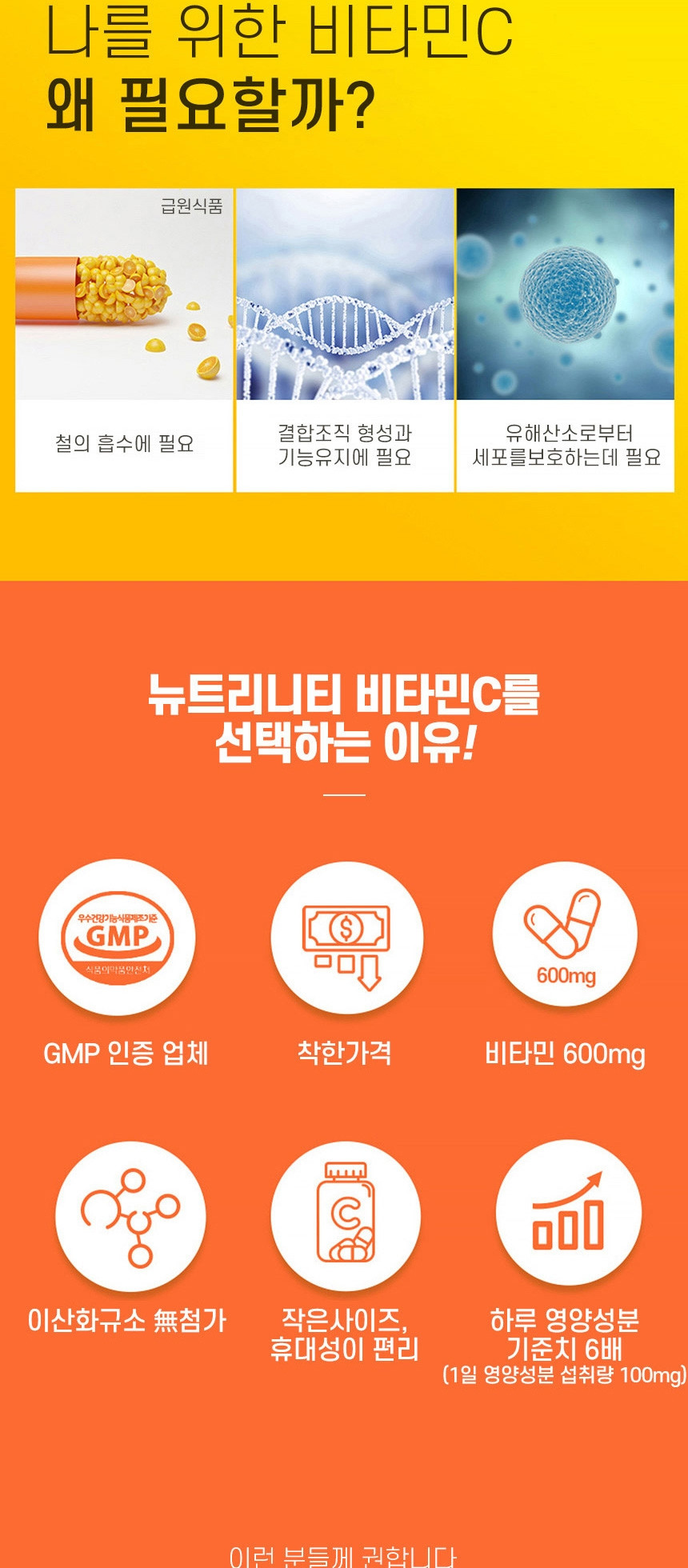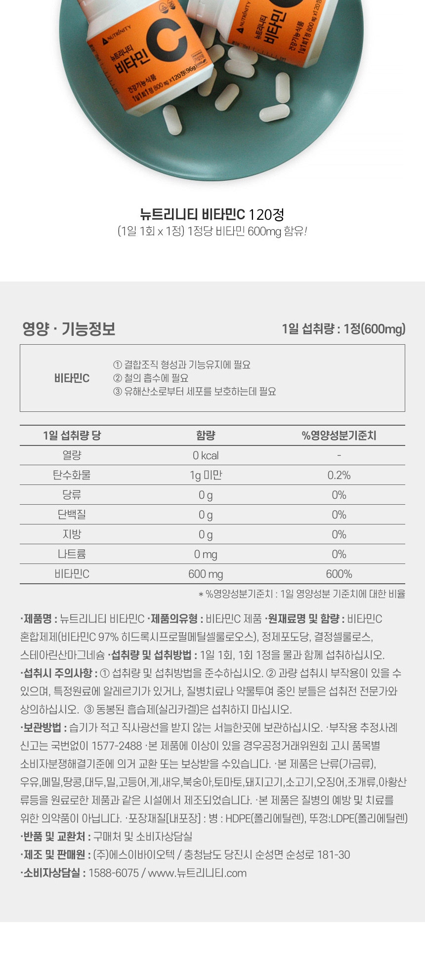 NUTRINITY 비타민씨 고함량 비타민C 600MG 120정 GMP