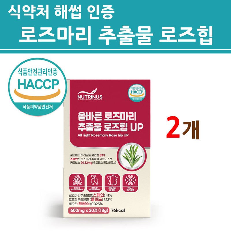 Nutrinus Correct Rosemary Rosehip Up Tablet Biotin Rosemary Extract Complex Sun Max Efficacy NUTRINUS 2pcs / 뉴트리너스 올바른 로즈마리 로즈힙 UP 업 정 비오틴 로즈마리추출물등복합물 Sun Max 효능 NUTRINUS 2개
