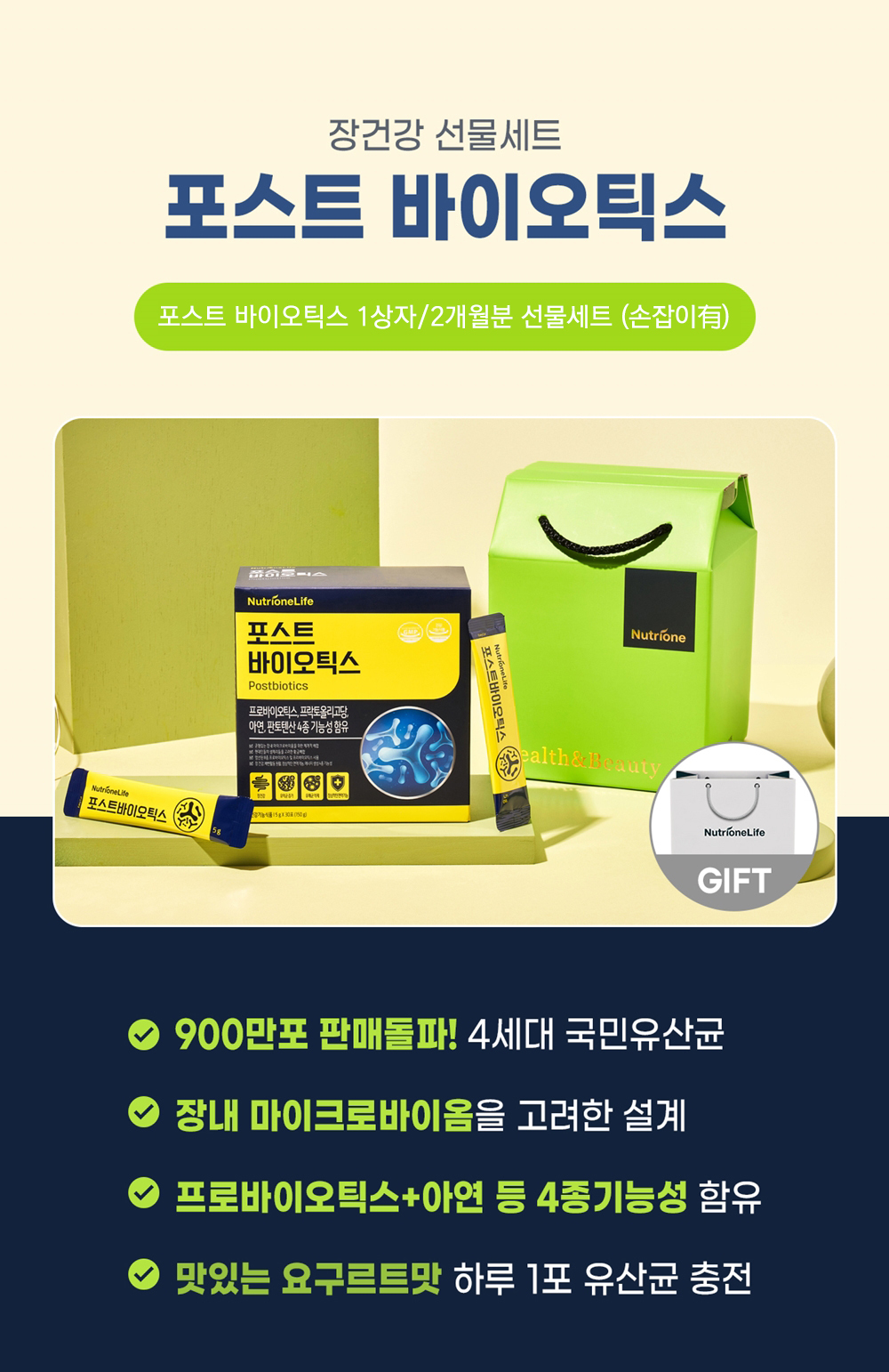 NutriOne 포스트바이오틱스 유산균 선물세트 1상자 (5mg*60포) /손잡이有 Postbiotics Probiotic Gift Set 1 Box (5mg*60 Packs) / With Handle