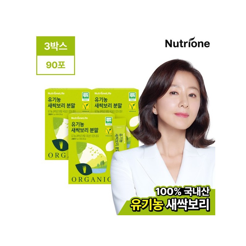 NutriOne [뉴트리원] 100% 유기농 새싹보리 분말 3박스(3개월분) [NutriOne] 100% Organic Barley Grass Powder 3 Boxes (3-Month Supply)