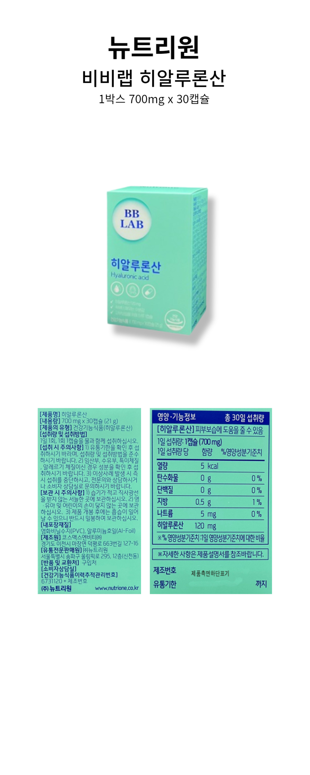 Nutrione BB Lab Hyaluronic Acid 30 Capsules 3 boxes x 3 months / 뉴트리원 비비랩 히알루론산30캡슐 3박스x3개월