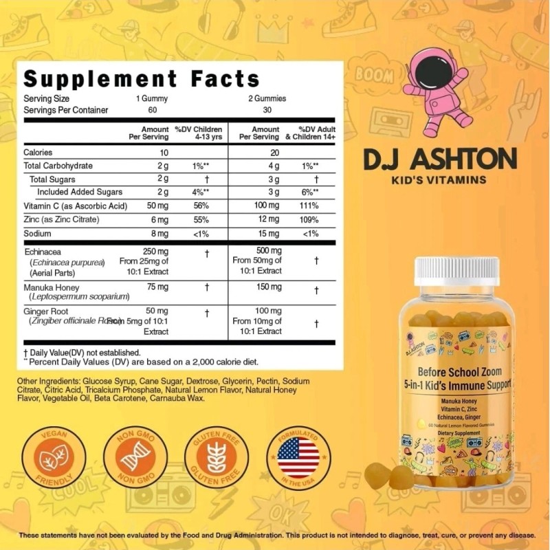 - Ingredients: Echinacea, Ginger (Zingiber officinale), Manuka Honey, Vitamin C (Ascorbic Acid), Zinc