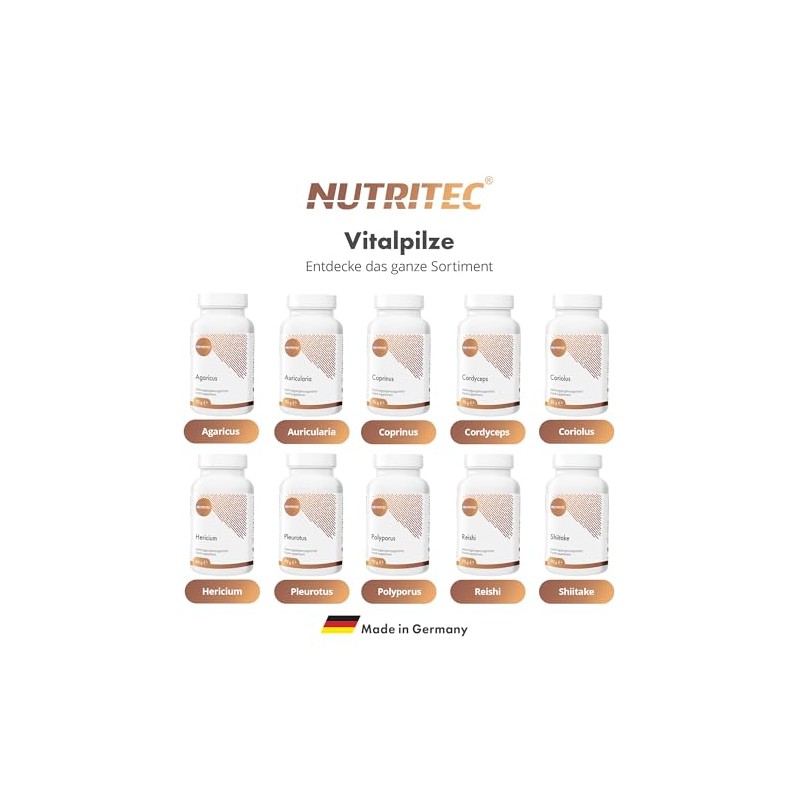 - SHIITAKE: The Lentinula edodes is rich in polysaccharides, amino acids, minerals and vitamins. It impresses with its extremely high-quality vital substances.