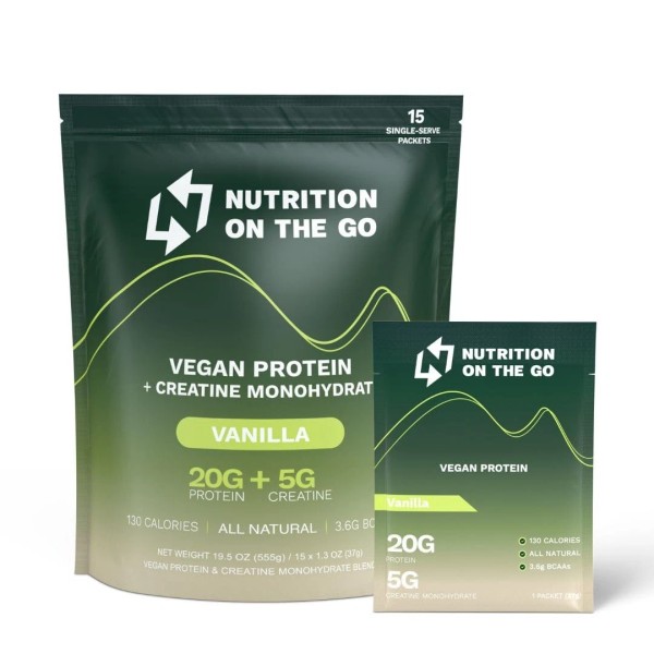 Nutrition On The Go Vanilla Plant Based Protein Powder 15 Pack with Creatine for Muscle Recovery