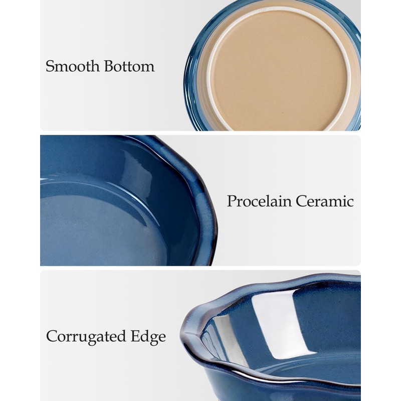 - 🧇Healthy Material🥯: Made of durable and non-porous stoneware, resistant to scratches and stains. Solid and enough, Food grade and lead-free material ensures the thick wall of healthy pie pan. Ceramic and porcelain does not stick as much as metal, longer using life span.