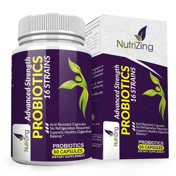 NutriZing Award Winning Probiotics for Digestive Health - 30 Billion CFU & 16 strains - Bifidobacterium and Lactobacillus Probiotic for Men & Women - Digestive Probiotic Capsules - Delayed Release