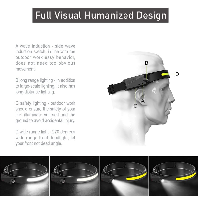 - Motion Sensor Mode - Led Headlamp Camping Accessories Is Equipped With The Latest Intelligent Sensors. Even If Wearing Gloves, As Long As The Distance From The Device Is Within 10 Cm, You Can Quickly Switch The On/Off By Waving Your Hand In Motion Mode.