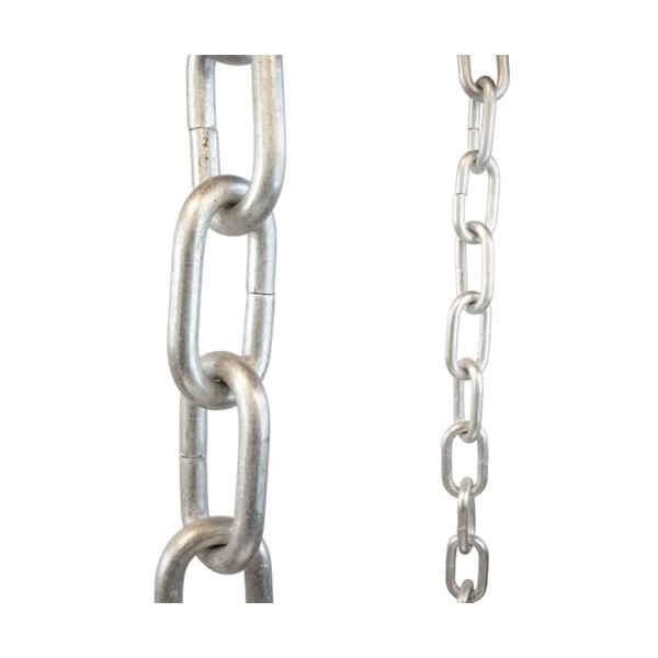 The Large Link Rain Chain is constructed of a thick, pure aluminum chain links. The Black and Bronze options are powder-coated aluminum with a matte finish. This chain is lightweight, making it perfect for adding a designer look to your gutter system.