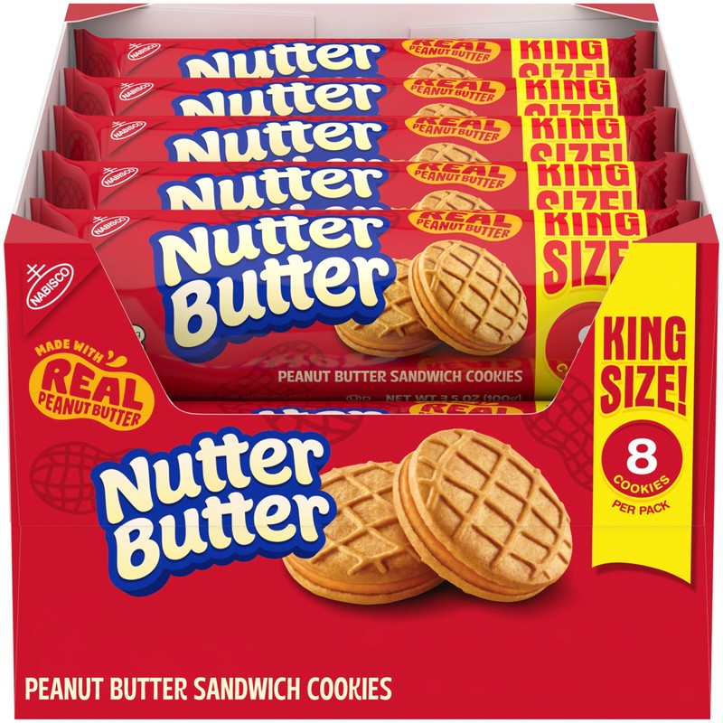 NUTTER BUTTER Peanut Butter Sandwich Cookies, King Size, 10-3.5 oz Snack Packs