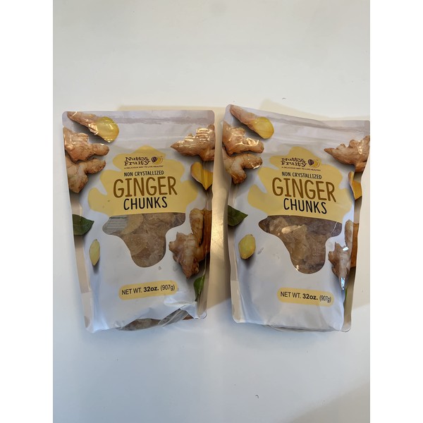 Nutty & Fruity Ginger Chunks Dried Non Crystallized (Pack of 2) 64oz total