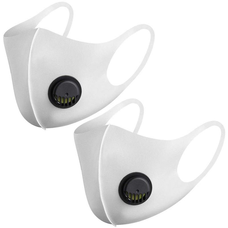 NUÜR 2 Pcs Reusable Face Mask, with Air Valve and Ear Loops, Breathable, Soft, Washable, Durable for Everyday Public Use, White