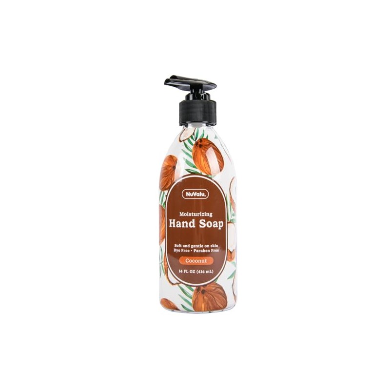 NuValu Liquid Hand Soap – Coconut Scent, Moisturizing Hand Wash, Gentle Formula for Soft and Clean Hands, 14 oz Pump Bottle
