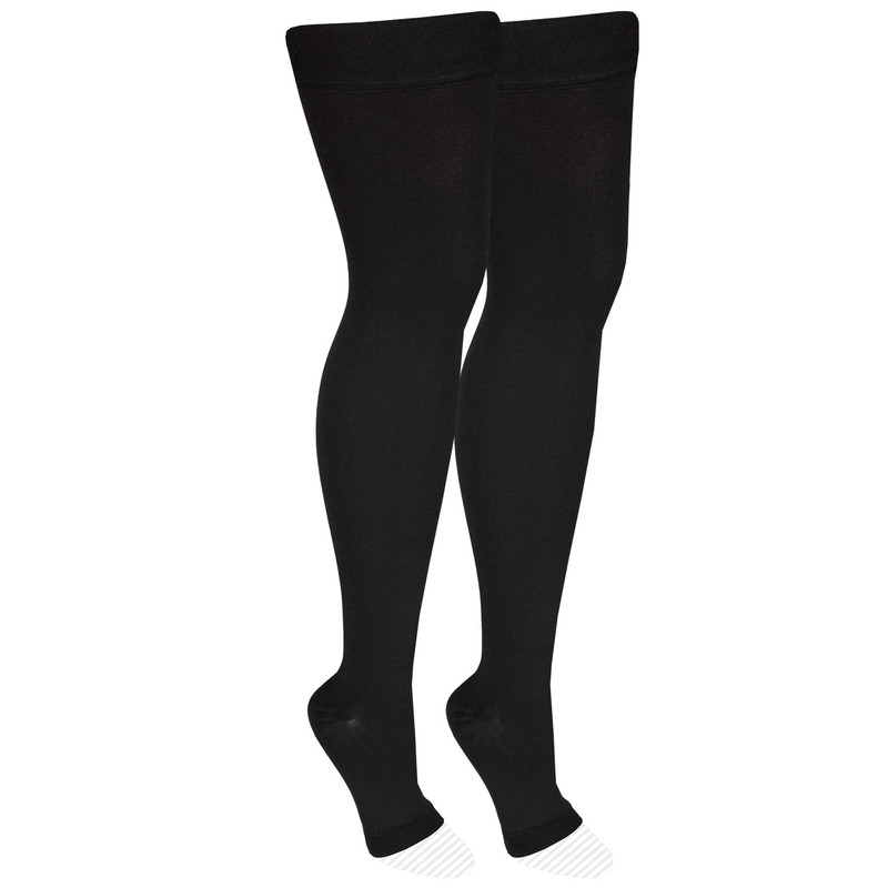 NuVein Medias de compresión médica, 20-30 mmHg de apoyo, manguera de longitud del muslo, puntera abierta, 2XL (1 par) - Negro (NV4468BL-2L)