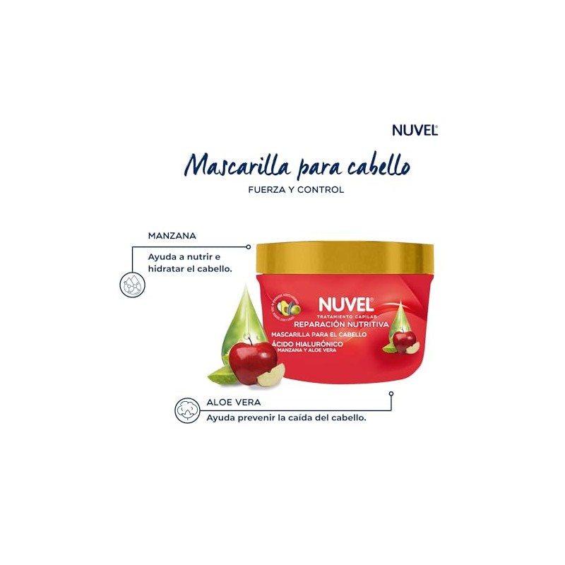 Nuvel Mascarilla Capilar Reparacin Nutritiva con Acido Hialuronico Manzana Aloe Vera 230 g, Tratamiento Capilar con Ingredientes Nutrivos,...