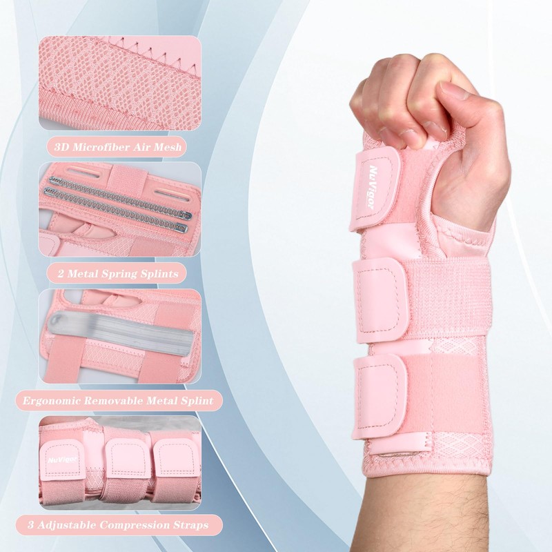 NuVigor wrist brace for carpal tunnel.Ergonomically designed,fits tightly to the hand, rest assured that the wrist brace will fit perfectly for maximum support and comfort. It carefully and comfortably supports your wrists, arms, hands and thumbs. Help reduce your arthritis wrist pain, osteoarthritis, basal thumb arthritis, tendonitis, repetitive motion strains, thumb orthosis. Recovery and rehabilitation from postoperative recovery,wrist injury, overuse strains, rsi, wrist surgery, broken wrists, hands or arms. Wear the wrist brace to support and protect your wrist during the day and while you sleep at night.