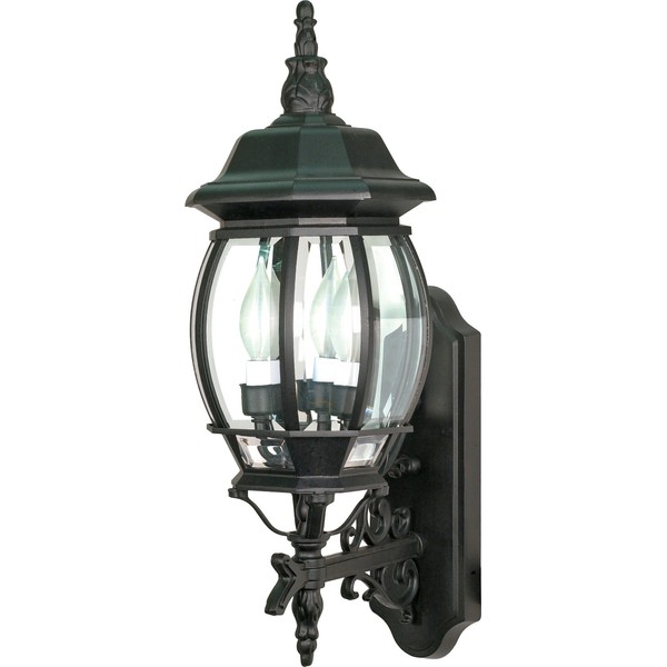Nuvo Lighting 60/890 Traditional Three Light Outdoor Wall Mount from Central Park collection in Black finish, Height: 22. 75 inches Width: 7. 38 inches Style: Traditional Light Type: Outdoor Safety Rating: cULus and Safety Listing: Wet Number of Lights: 3, Bulb Type: B, Bulb(s) Included: No