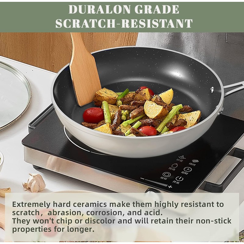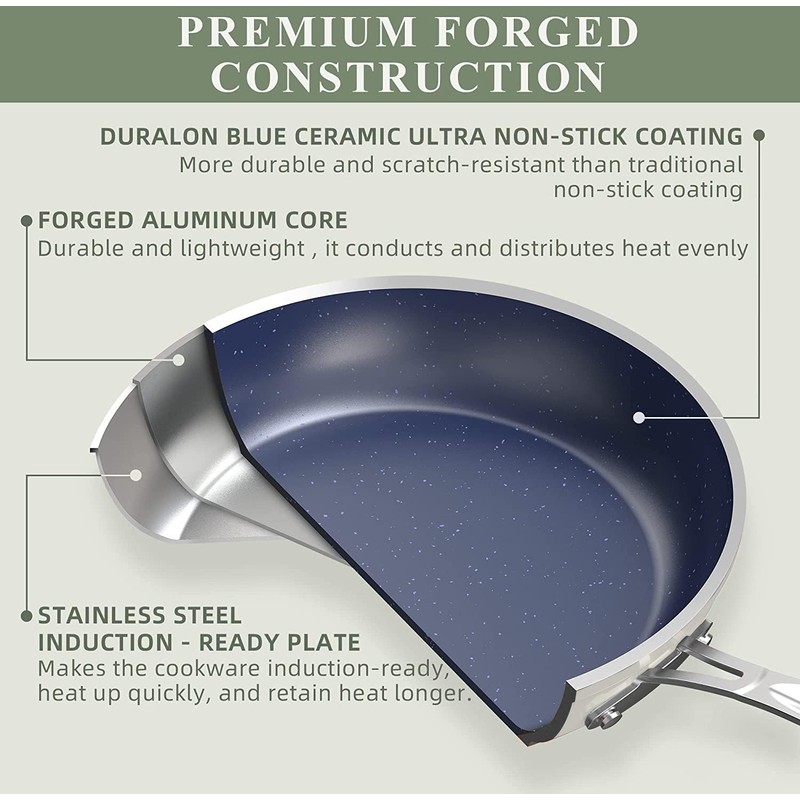 - HEALTHY DURALON BLUE COATING – The eco-friendly, ultra-non-stick Gen10 Duralon Blue is all-natural ceramic coating free of harmful chemicals like PFAS*, PTFE, PFOA, lead, and cadmium. It also does not emit toxic gases at higher temperatures. *Tested by TÜV Rheinland for 106 known PFAS elements and none were detected.