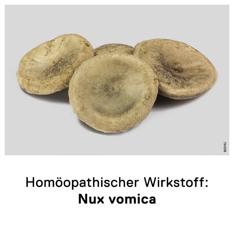 - Active ingredient: Nux vomica D12, 10 g scatter balls. Contains sucrose (sucrose).