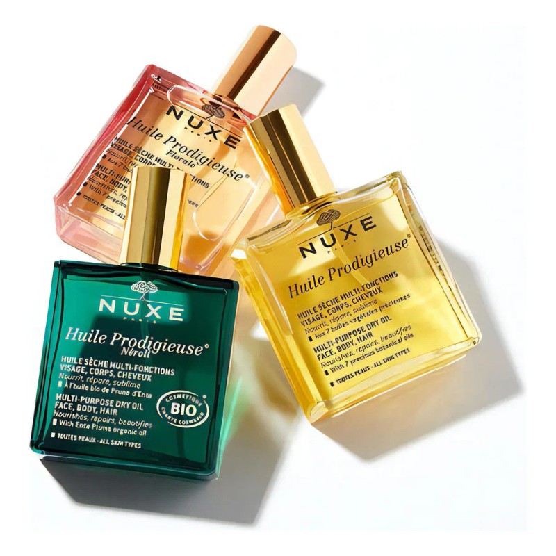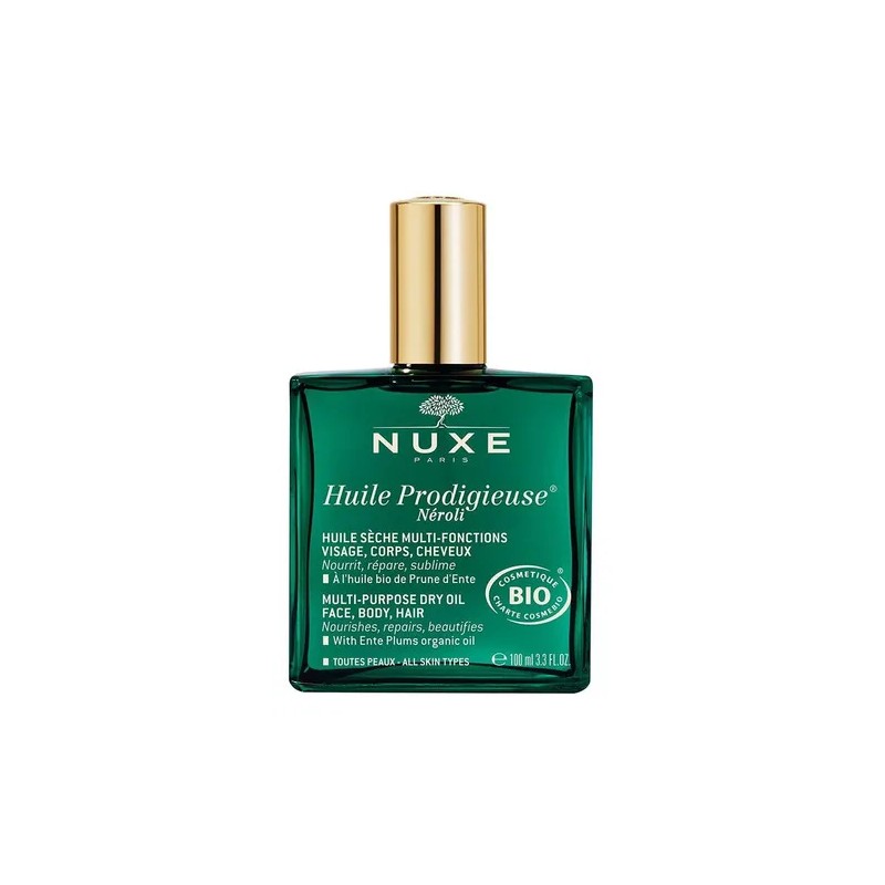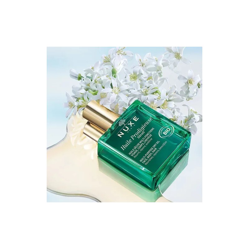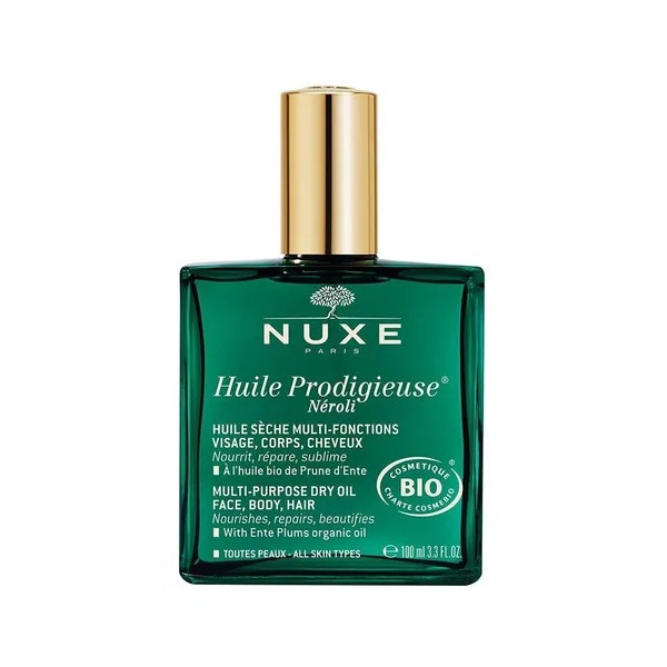🌙 Nuxe Huile Prodigieuse® Néroli – 3.4 fl oz | Edición Negra es un aceite seco multifunción de lujo con certificación orgánica que hidrata, repara y embellece la piel y el cabello. Su delicado aroma a flor de naranjo (néroli) brinda una experiencia sensorial única, mientras su fórmula 100% natural con aceites vegetales deja la piel suave, luminosa y sin efecto graso. ✨🌿