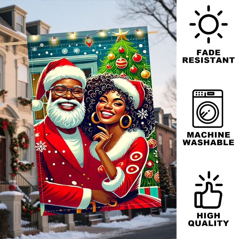 - Instant Enchanting Holiday Transformation With its “African American Santa couple + nativity - style scene” design, this Christmas Garden Flag turns any outdoor area into a joyful winter celebration hub. It boosts joyful holiday spirits, perfect for Christmas parties, family gatherings, or events seeking a dash of unique, culturally infused seasonal charm. A must - have for holiday decor lovers elevating their outdoor christmas decor.