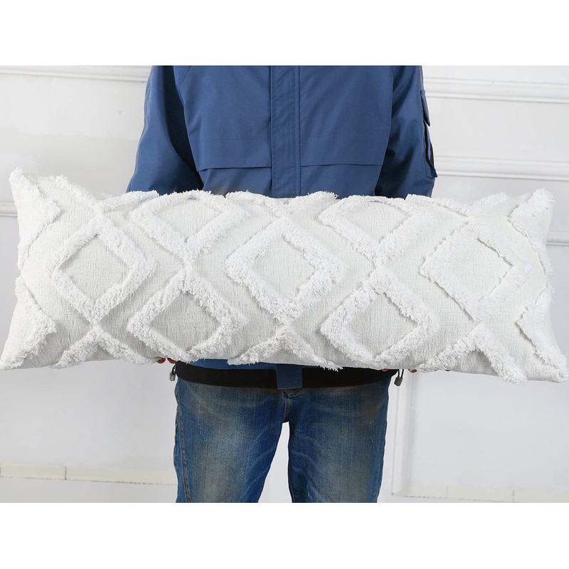 NUYECY Diamond Pattern Extra Long Pillow Covers 14 x 36,Plush Chenille Decorative Long Lumbar Pillow Covers Pillow Case Cushion Case for Sofa Couch Bed Livingroom Farmhouse,Modern Boho,Cream White