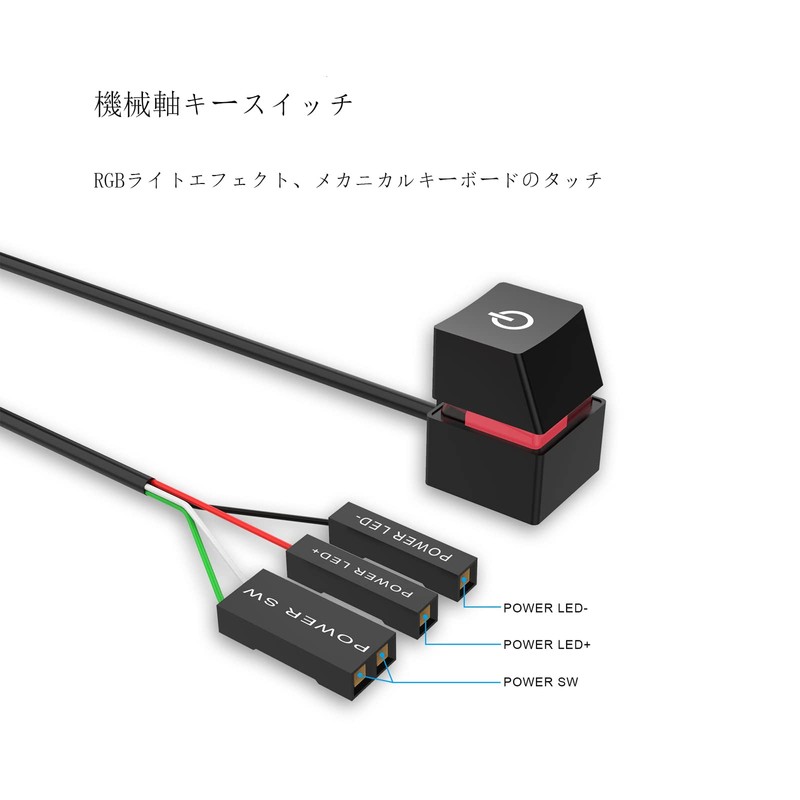 - PC case external extension switch, machine blue axis button, cable length 6.6 ft (2 m), compact and convenient. The light is RGB and has three interfaces: POWER SW, POWER LED+, and POWER led-, so you can find the corresponding interface in your computer case and connect it to use