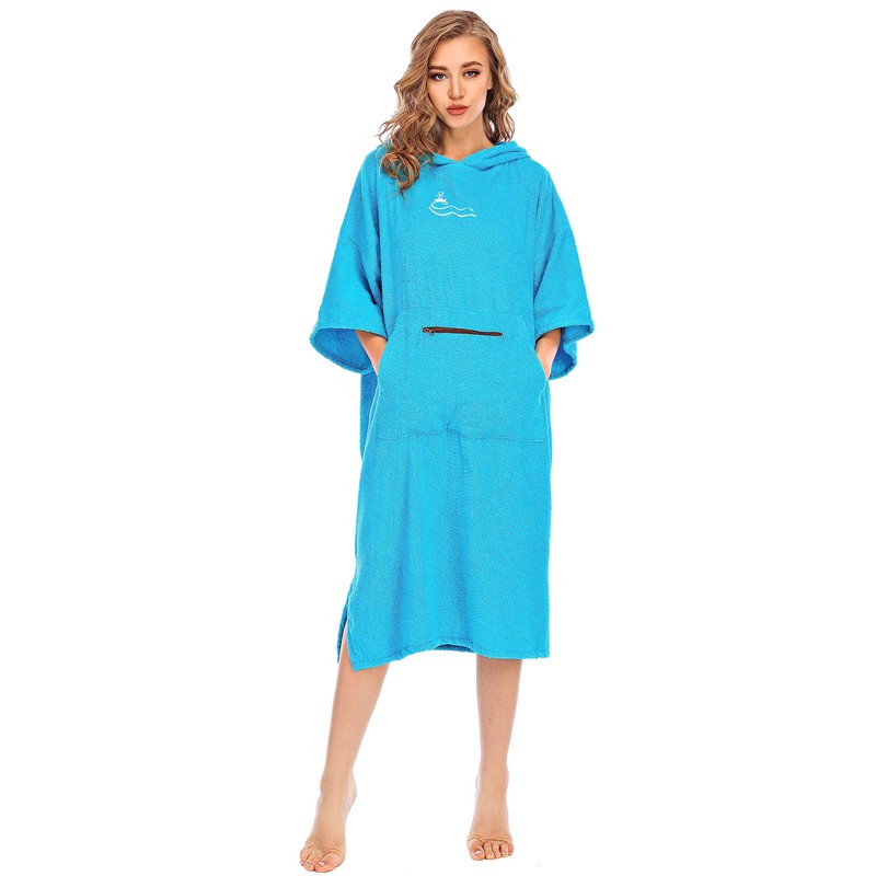 NUZAMAS Surf Poncho Changing Robe with Hood Cotton Mid-Sleeved Soft Quick Dry Wetsuit Changing Towel with Pocket for Surfing Beach Swimming