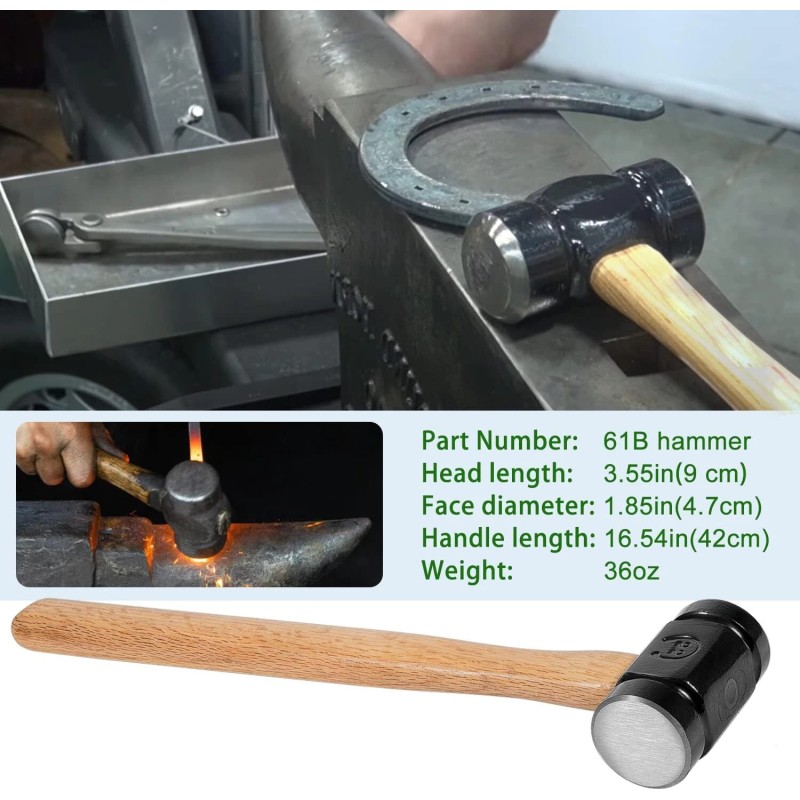 36OZ Rounding Hammer (61B hammer) for Handmade Farrier Forge Tool Versatile Blacksmith Forging Hammer