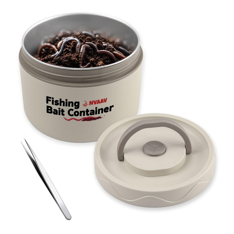 NVAAV Insulated Live Bait Container, Stainless Steel Live Bait Storage, Worm Bait Holder, Bait Storage Nightcrawler Box, Bait Bucket to Keep Bait Fresh and Alive (1PC-0.6L)