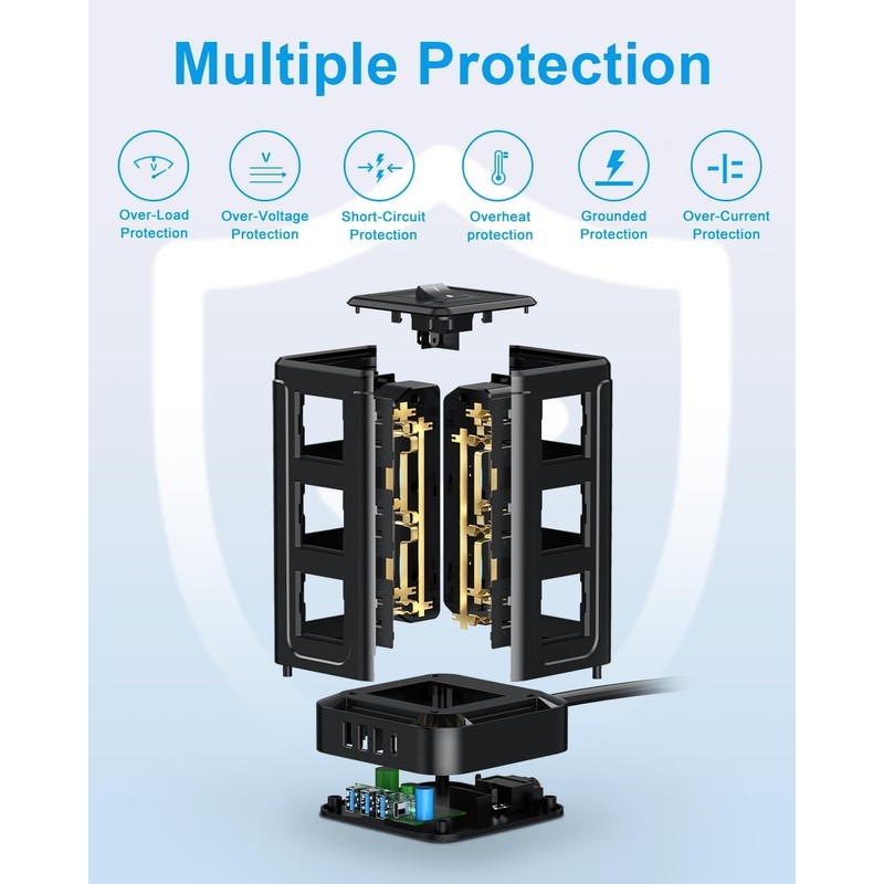 - Protección múltiple y resistente al fuego: regulador de voltaje está hecho de material ABS + PC ignífugo y tecnología de protección multifuncional avanzada, Protector contra Sobretensiones de torre que proporciona protección contra sobretensiones (1080J), multicontacto torre protege su dispositivo contra sobrecorriente/sobretensión/sobrecarga/sobrecalentamiento/cortocircuito/alta temperatura, muy seguro de usar.