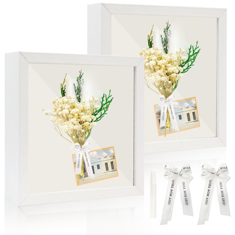 - Product list: you will receive 2 deep picture frames for filling, 2 silk ribbon and 1 glue, perfect for storing wedding bouquets, specimens, plants, shells, pet souvenirs, travel tickets, baby shoes, etc