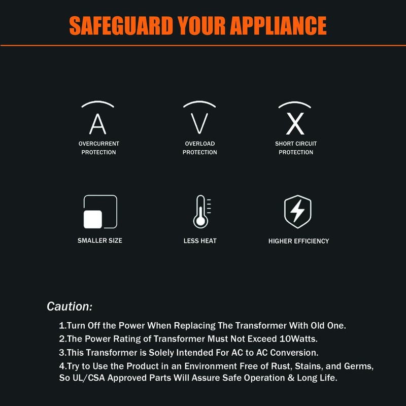- Versatile Step Down Transformer: This NVMIDTC UL-Certified AC Transformer Efficiently Converts Input Voltage from 110V 50/60Hz to a Stable 12V 10VA Output. This 120 Volt to 12 Volt AC Transformer Meets Rigorous Safety Standards and By Incorporating Over-current Protection, Overload Protection, and Short Circuit Protection, It Ensures the Safety of User Usage