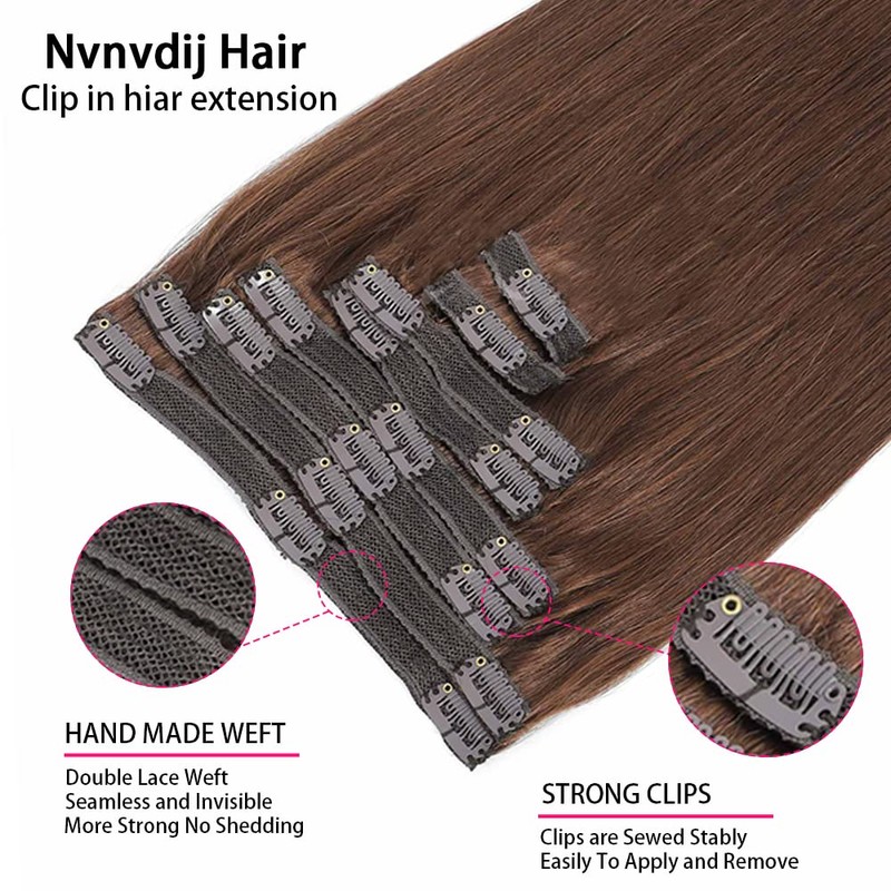 Nvnvdij Straight Clip in Hair Extensions Remy Human Hair 8pcs Per Set with 18Clips Double Weft Clip in Human Hair Extensions Real Human Hair For Women (22 Inch #4) #4 Medium Brown