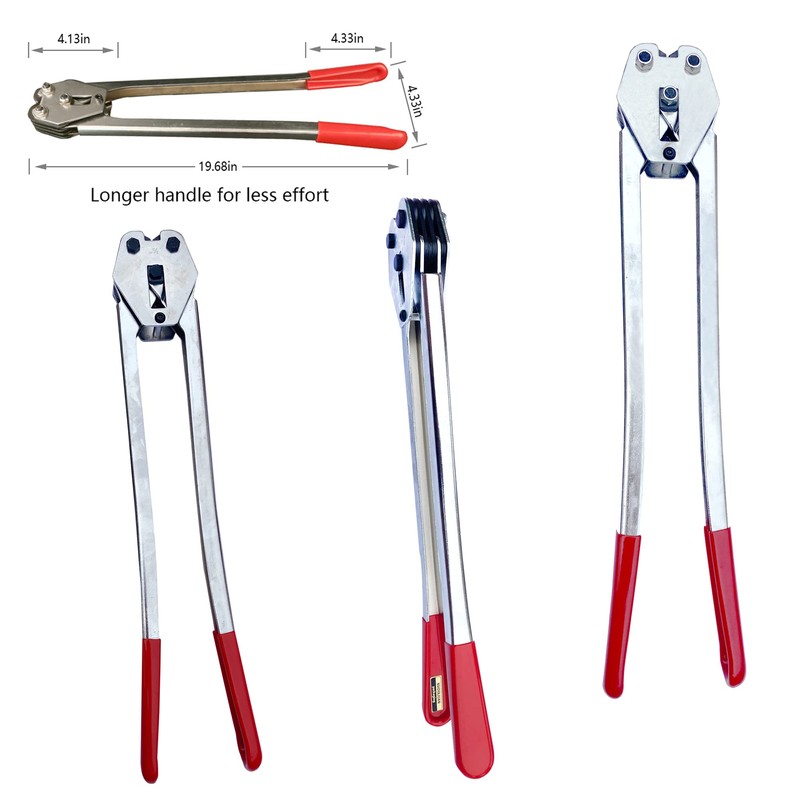 - The cutter of the tensioner tool is incredibly sharp, allowing for smooth cutting of the green strap every time. On the other hand, the sealer tool’s hand has a length of 19.68 inches, making it easy to complete the strapping buckle’s locking function.
