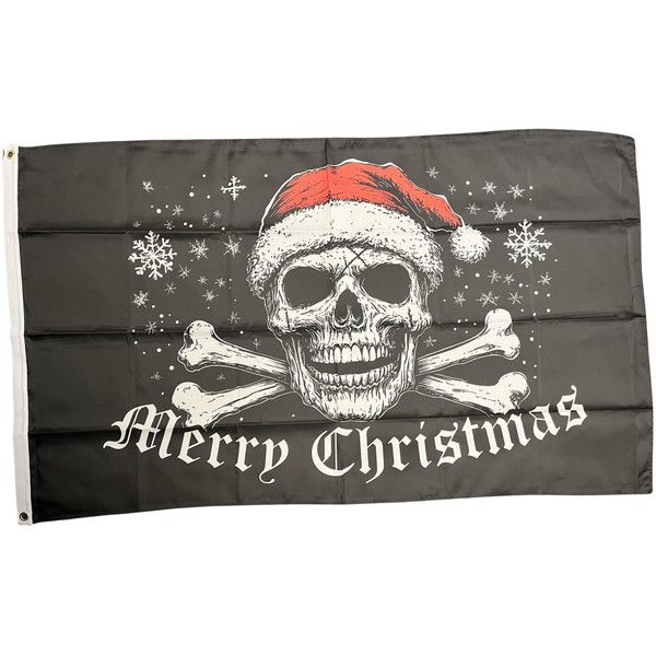 NWFlags Merry Christmas Skull Flag 5ft x 3ft 75d Premium Polyester Suitable For Flagpoles | Strong Polyester 5x3 foot material flag with Eyelets