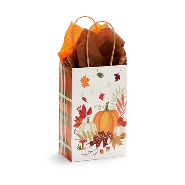 NWP Pumpkin Plaid Paper Shopping Bags - Rose Size - 5.25 x 3.5 x 8.25in. - Pack of 25