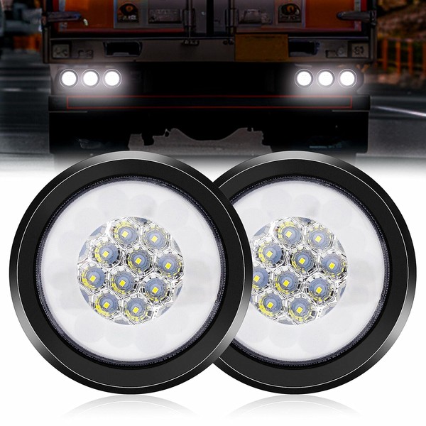 NWpangu 4 inch Round LED Trailer Tail Lights, Reverse Running Light 24LEDs w/Rubber Grommet Sealed Waterproof for Truck RV Van, White, 2PCS