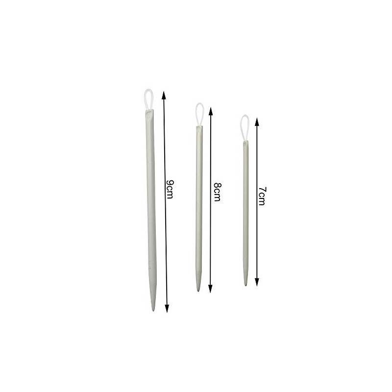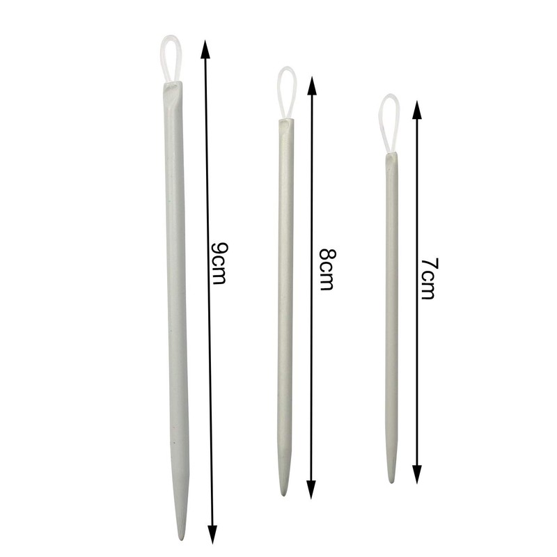 - The package includes 6 knitting needles of 3 sizes, 2pcs each size, Length: Approx. 9cm/3.54inch; 7.8cm/3.07inch; 7.6cm/2.99inch The inner diameters are: 3.0mm, 2.5mm, 2.0mm