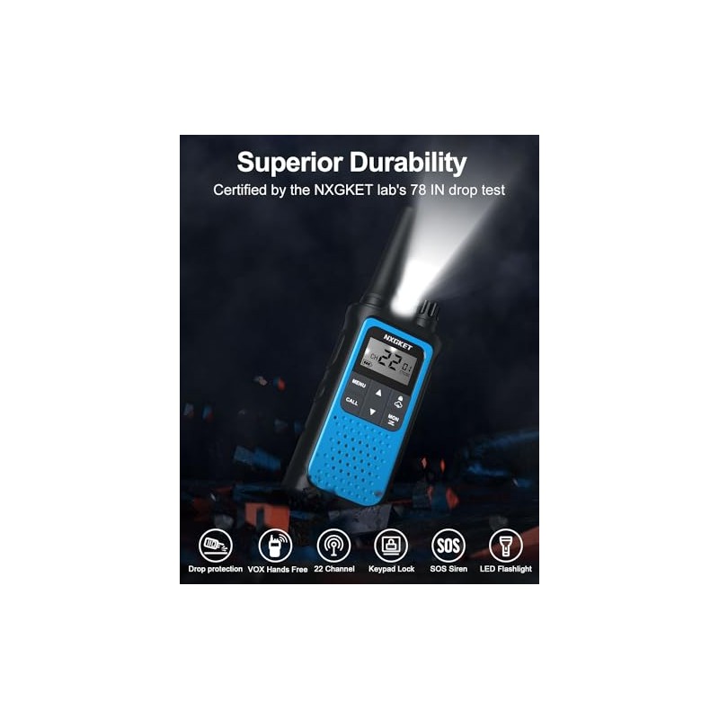 - Perfect for All Ages to Use: NXGKET walkie talkie is a great communication tool for men, women, kids, and elders to talk. It provides long-range communication which is good for skiing hiking, bicycling, camping, road trips, cruise, commercial and job site. You'll have the flexibility to transmit messages without removing the radio from your belt or carrying case.
