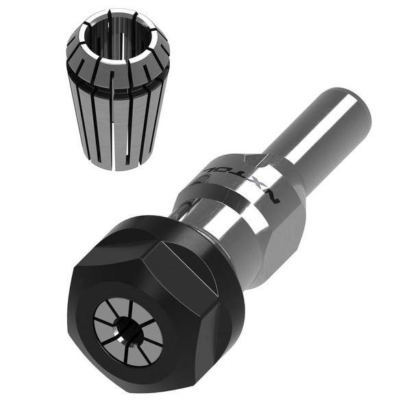 - ER Collet system allows for greater clamping strength versus straight slotted collets. ER collets contact the entire length of the engaged tool shank. Uniform compression of collet ensures your cutter will not slip.