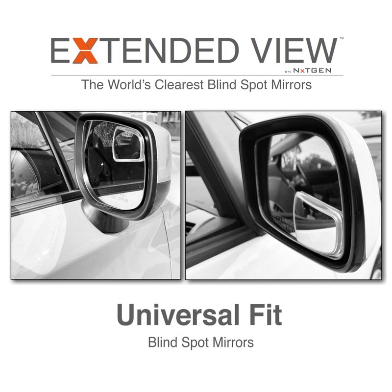 NXTGEN Extended View Blind Spot Mirrors | Universal Fit | Real Glass | Premium Clarity & Visibility - 2 Piece Set (Left & Right)