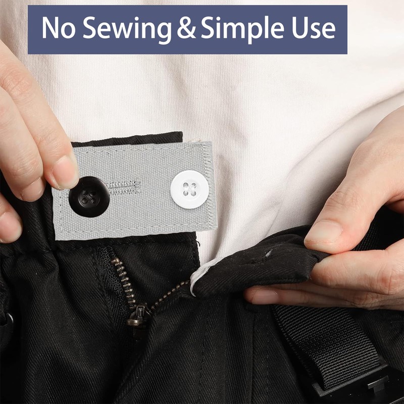 - Value Set: 20PCS No Sew Jeans Waist Extension: 4 PCS/4 Colors/2 size Waist Extenders Button, 4 PCS/3 Colors/2 size Denim Waist Extenders Button and 12PCS/3 Colors/2 size Button Extenders. 3 style and multi-size waistband expander suitable for all kinds of pants, skirts.