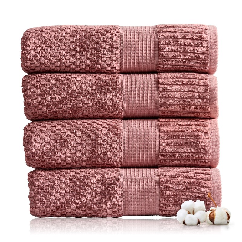 NY Loft 100% Cotton Bath Towel 4 Pack | Super Soft & Absorbent Quick-Dry Bath Towels 30" x 52" | Textured and Durable Cotton | Premium Thick Towels | Trinity Collection (4 Pack Bath Towel, Rose)