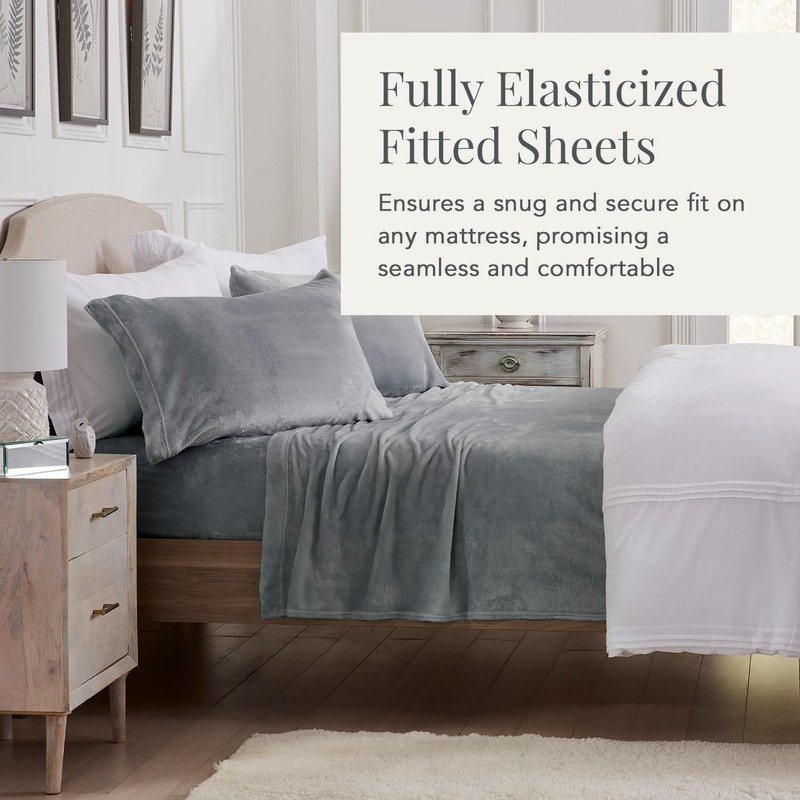 NY Loft NY Loft Ultra Soft Micro Fleece Sheets Set | Queen Size | Plush Polar Fleece Sheet Set | Velvet Plush Cozy Warm Sheets | Tribeca Collection (Queen, Grey)