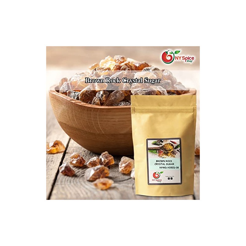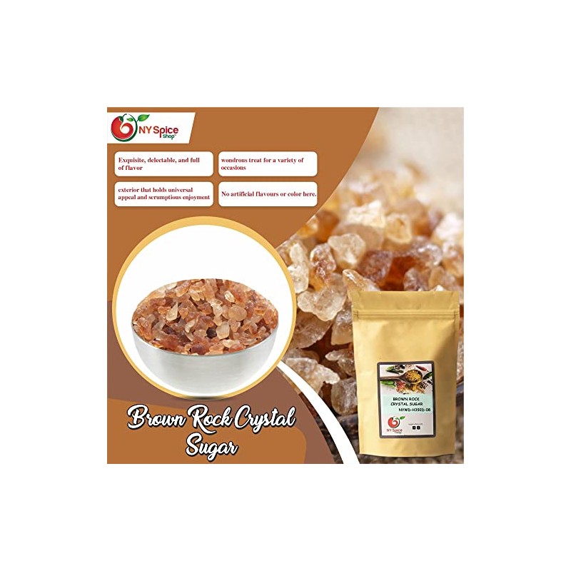 NY SPICE SHOP Brown Rock Crystals Sugar – 8 Ounce Rock Sugar - Pure Cane Sugar Crystals - Crystalized Rock Sugar – Rock Sugar Candy - Natural Cane Sugar – Sweet & Delicious - Used for Tea & Coffee