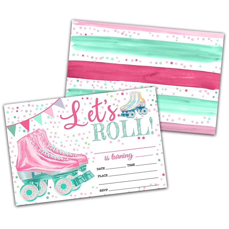 NYCTUG Let's Roll Birthday Fill-In Invitation(4" X 6"), Roller Skate Birthday Party Double-Sided Invites- 20 Invitations With Envelopes-Party Supplies-A17