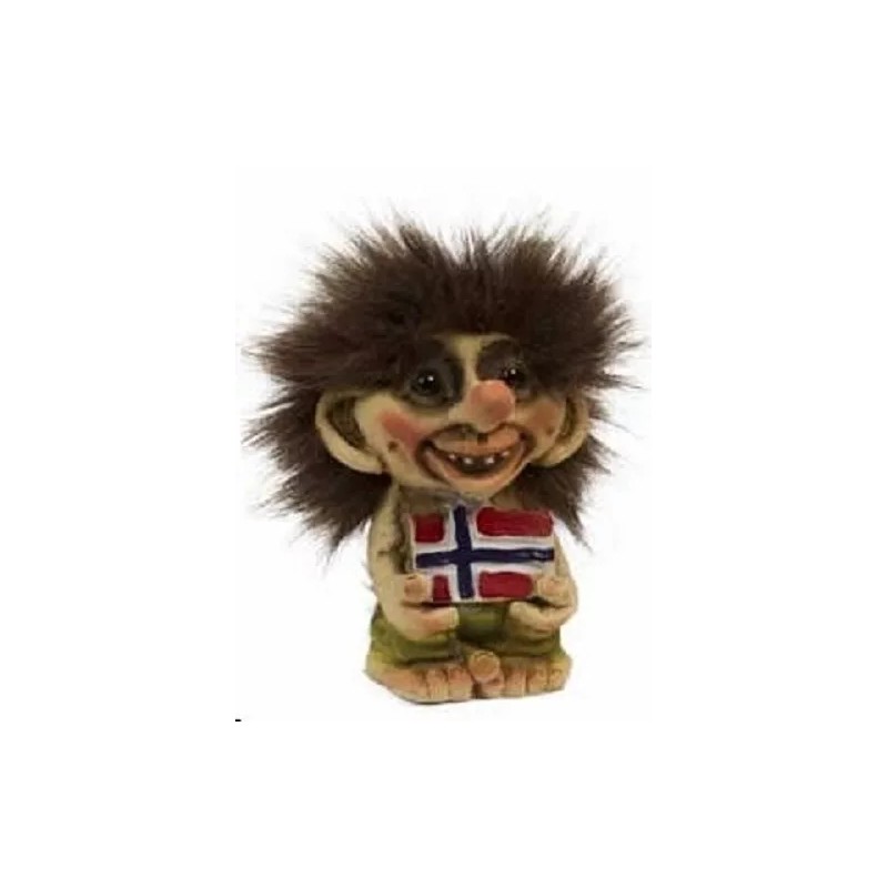 Celebrate Norwegian heritage and culture with this official Nyform Troll with Norway Flag Figure. This is a great keepsake piece to celebrate Norwegian folklore and the land of trolls. This happy and collectible Norwegian troll holding the flag of Norway will delight with pure joy, because everyone needs a troll!