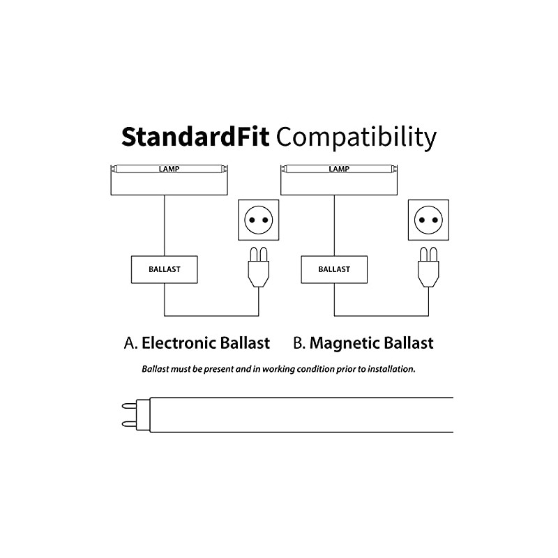 - T8 LED lamp works with traditional magnetic ballasts and electronic ballasts. It's fully compatible with Instant Start, Programmed Start, Rapid Start ballasts and legacy pre-heat magnetic ballasts