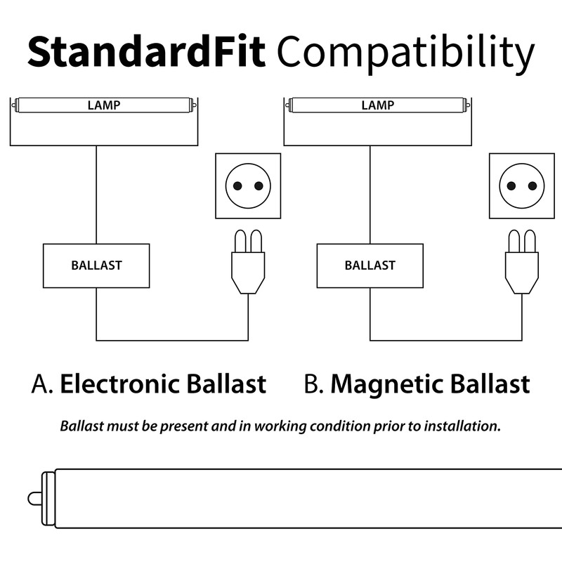 - T6 LED lamp works with traditional magnetic ballasts and electronic ballasts. It's fully compatible with Instant Start, Programmed Start, Rapid Start ballasts and legacy pre-heat magnetic ballasts